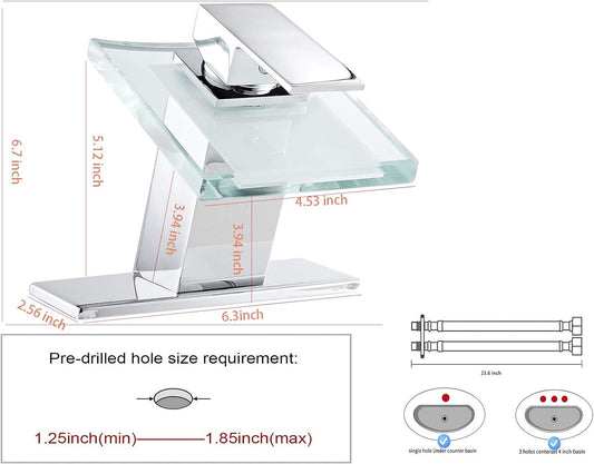 Transform Your Bathroom with the Stunning LED Light Waterfall Faucet - 3 Color Changing Spout for Hot and Cold Water Mixing, Single Handle Design, Chrome Finish, and Easy Installation!